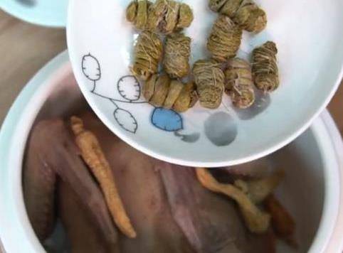 然後往裡加入兩片生薑去腥,再加入20克的花旗參(參片也可以)
