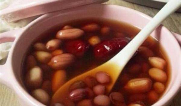 【食材】紅豆150g,紅棗8顆,枸杞30g,紅皮花生100g,紅湯20g。