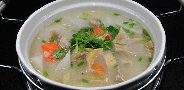 我們把白蘿卜洗幹凈後切塊,瘦肉切塊,將白蘿卜和瘦肉放入鍋中,加入適量的清水,大火煮沸,轉文火煲四個鐘頭,用少許鹽調和,就可以飲用瞭。