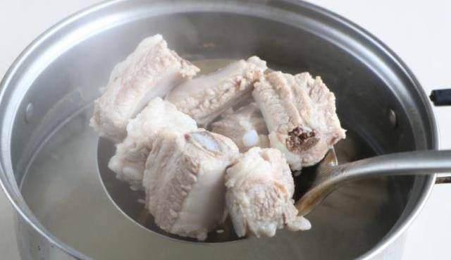 2、排骨清水浸泡,冷水下鍋焯去血水,撈出清洗幹凈;