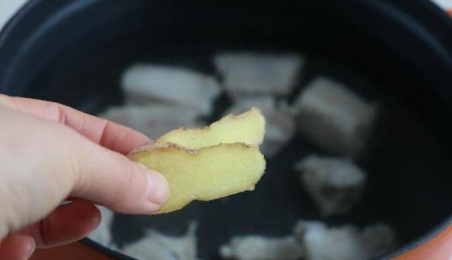 3、另起鍋加入足夠的清水,放入排骨,再放入2片生薑,大火燒開轉文火燉;