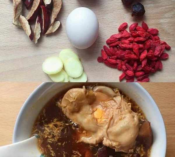 原料:土雞蛋、龍眼、枸杞、紅棗、生薑、紅糖。