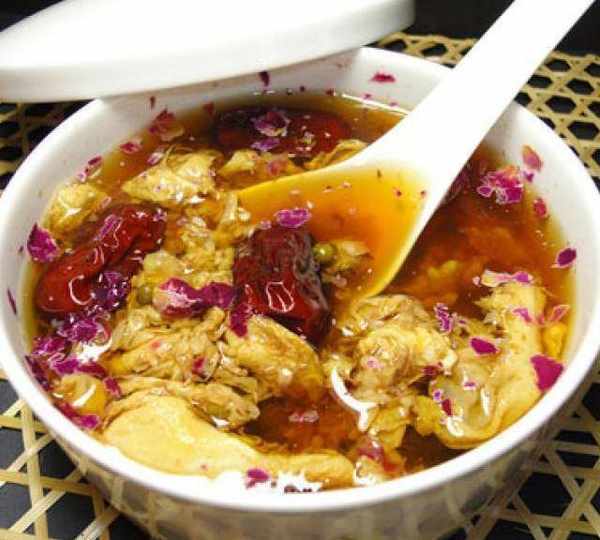 紅棗:紅棗具有補虛益氣、養血安神、健脾和胃,對於貧血效果好桂圓:益心脾,補氣血,具有良好的滋養補氣、益智寧心、安神的功效,可用於心脾虛損,氣血不足。當歸:當歸入心、肝、脾經。具有活血、補血的作用,用於血虛萎黃,眩暈心悸雞蛋:健腦益智,雞蛋黃中的卵磷脂、甘油三酯、膽固醇和卵黃素,對神經系統和身體發育有很大的作用。雞蛋含有所有人體所需要的營養物質,故被稱為“理想的營養科”。酒糟:酒糟發酵後裡面含有大量的維生素B族,是任何食物都代替不瞭的,酒糟可以促進胃液分泌,增加食欲,幫助消化,酒糟適合冬天進補,能暖胃,促進血液循環,可以祛除體內的寒氣《當歸酒釀蛋花湯》特別適合胃寒,氣血手腳冰涼的人。來上一碗暖暖的。
