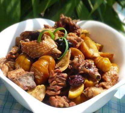 板栗100克,新鮮土雞肉150克,幹香菇5朵,大米250克。生抽、料酒、食鹽、蔥薑蒜、辣椒、胡椒粉適量