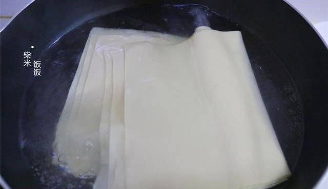3,豆腐皮用開水燙一燙,可以去除豆腥味,也能使口感更軟嫩。