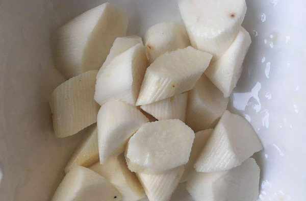 (4)山藥去皮切滾刀塊。