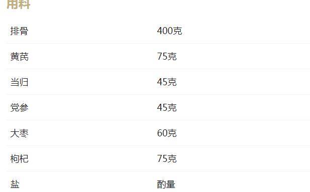 當歸、 黨參、 黃芪、紅棗、枸杞這幾味中藥材是益氣補血的,和排骨一起燉食能夠迅速補充人體血氣,起著固本培元調理的作用。養生排骨湯,其主要做法配料如下: