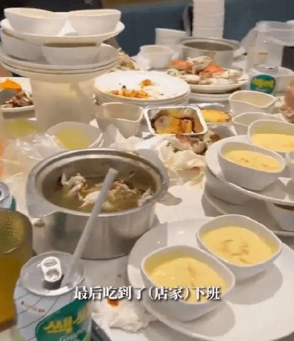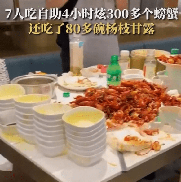 據當事人稱,平常大傢飯量都很大,所以一般都選擇自助餐廳,當時吃瞭300多個螃蟹,每個人還吃瞭幾盤甜蝦和生魚片,而小龍蝦一直在吃,幾乎沒有停過,最後吃到瞭人傢自助餐廳下班瞭。