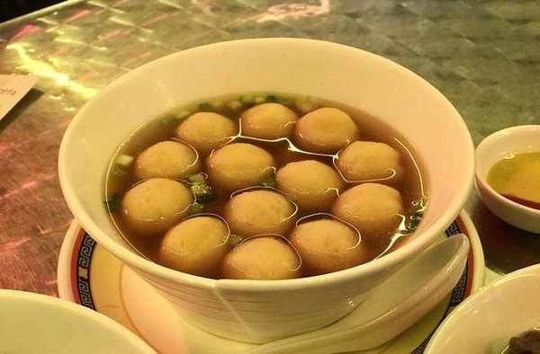 魚蛋面,上面漂著圓圓的、白白的魚蛋,咬一口筋道彈口,回味有一點點的微甜,面條滑爽吸足瞭湯更加入味。
