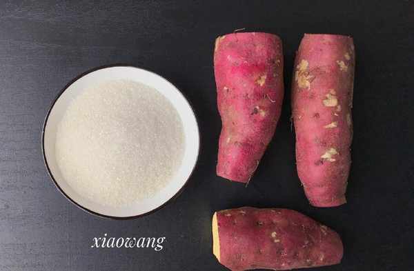 【材料】:地瓜400克、白糖100克、色拉油適量