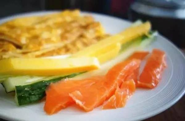 6.三文魚飯卷的做法:黃瓜、三文魚切條,準備厚蛋燒之類你喜歡的食材。