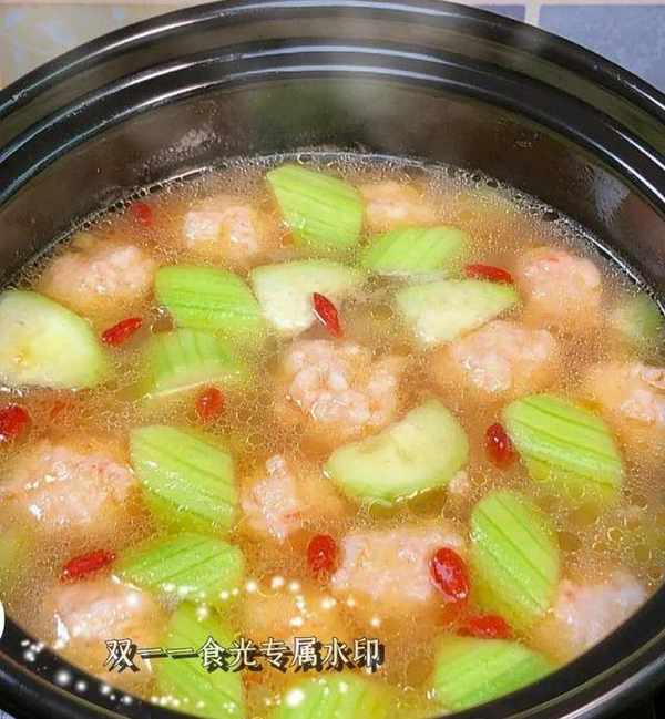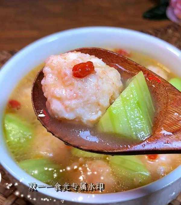 3、煮開後,蝦泥用勺整理出丸狀,放入鍋中,待煮沸,蝦滑飄起,放入少量鹽和胡椒粉,一小把枸杞,即可關火。