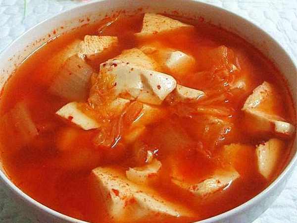 絹豆腐300克、泡菜135克、韓式辣椒醬適量、鹽適量、味精適量。