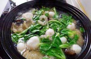 最後加入小青菜,湯再次沸騰就關火。最後嘗下咸淡,就可以上桌啦。