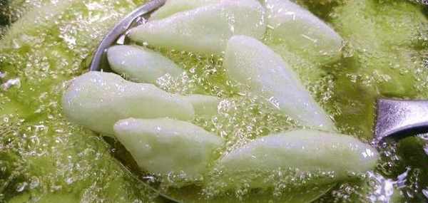 裹好淀粉後,咱們把鍋裡加上適量的油燒制5成熟,把山藥從鍋壁滑入鍋中,期間保持中火加熱,用漏勺攪動山藥,防止粘在鍋底上,等山藥的表面變的微黃後,咱們調成大火慢慢炸至金黃色,等上色稍微深一點的時候撈出來控油即可。