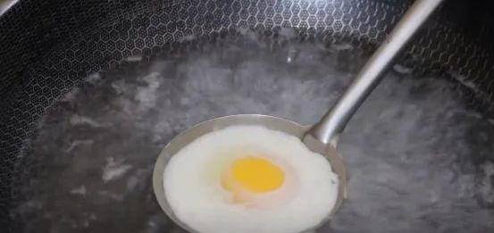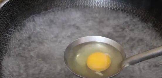 2、接下來將準備好的雞蛋倒入勺子裡,然後將勺子浸入開水中,註意不要讓開水浸入勺子中,用隔水的方式來浸燙雞蛋,讓鍋中的開水一直保持沸騰的狀態,保持用高水溫將雞蛋表面燙至定型就可以瞭。荷包蛋中的蛋白質含量豐富,其蛋白質主要包含卵清蛋白和卵球蛋白,不僅含有多種氨基酸,而且其組成與人體所需地非常接近,食用後人體容易吸收。而且荷包蛋中還含有部分脂肪、鐵、維生素D等,對人體發育和健康大有裨益。
