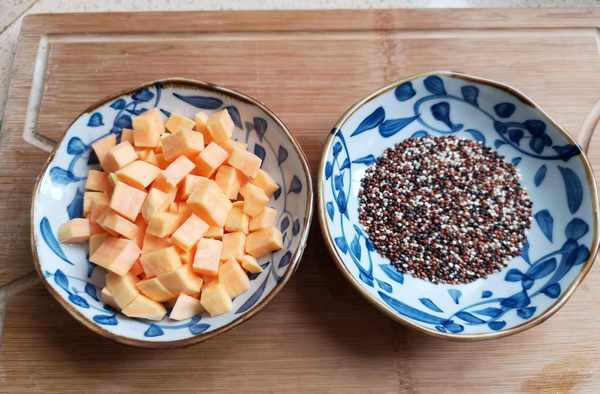 準備食材:粳米一杯,藜麥半杯,紅薯一個