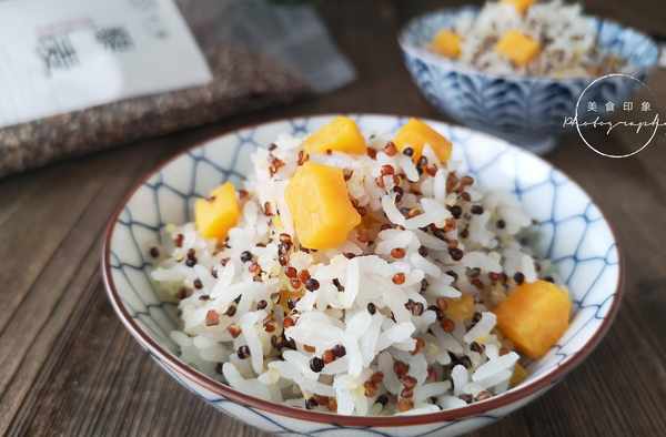 6、煮熟後的紅薯藜麥飯看起來就非常誘人。