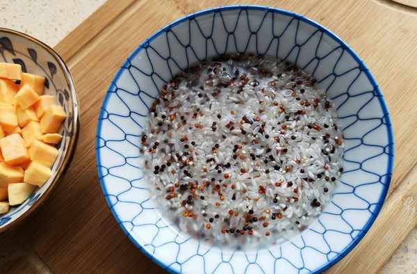 1、將所有的主食材準備齊全,三色藜麥、紅薯、粳米。
