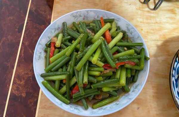 【炒蒜苗】這道菜的菜名是非常有爭議的,在我們這裡叫蒜苗,而其他有的地方,又叫蒜薹、蒜豪等,它烹炒起來也很快手,將咸肉熱油下鍋,煸炒出油脂後,倒入蒜苗,大火炒約3分鐘,倒入紅辣椒,再調入鹽、生抽,繼續炒個1分鐘左右,就能出鍋瞭。