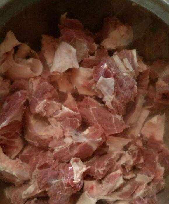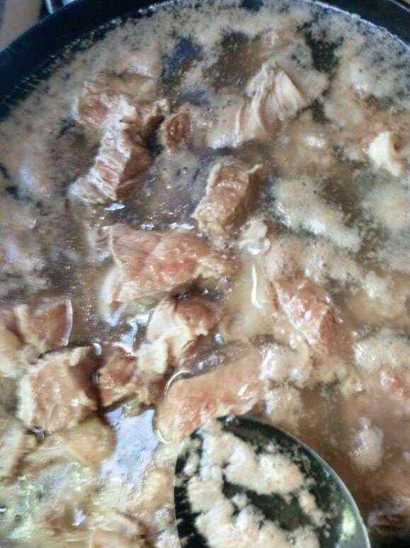 撈出泡好的牛腩冷水下鍋,大火燒開後轉小火,用勺撇去浮沫