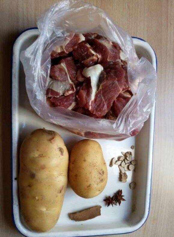 準備好食材:牛腩兩斤多,土豆兩個,桂皮一小塊,八角兩粒,白芷幾片