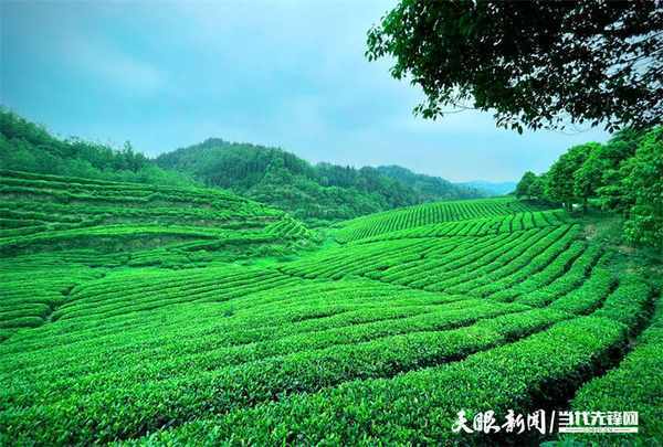暮春時節,安順市西秀區舊州鎮的安順蠶種場茶山,微風拂過,茶葉隨風搖曳,泛起陣陣清新茶香,讓人心曠神怡。