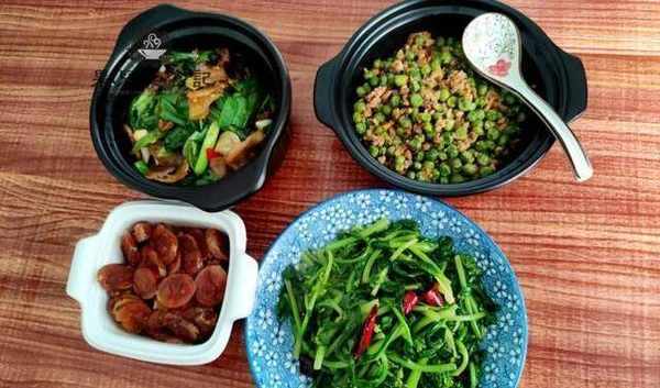 前面三個菜都是肉菜,一定還是要配一份菜,一般我們都炒蔬菜苔蘚,加大蒜蓉,炒辣椒炒蔬菜苔蘚的香味入味,我們傢百吃不厭。