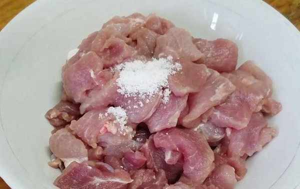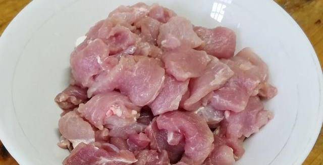 第一步:準備一塊新鮮的豬肉,洗幹凈之後去掉肥肉(肥肉留著可以炒菜用到),再將剩下的瘦肉切成小塊,切好之後再用清水沖洗幹凈,洗去裡面的血水,洗好後控幹水分放入碗中備用。
