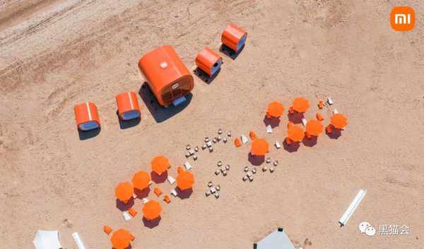 阿那亞海灘上的橙盒派對現場,小米佈置有趣的橙色打卡裝置,帶領現場觀眾體驗有著多重科技加持的沙灘露營,感受小米的專屬氛圍。