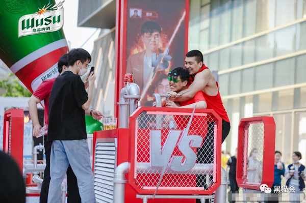 在上海靜安大悅城 ,大烏蘇擺下瞭三大挑戰區——需要精確打出620ml的打酒挑戰臺、有機會被肌肉猛男舉高高的酒量打卡墻和狂炫能量補給的大烤快閃店——專治各路英雄的不服!