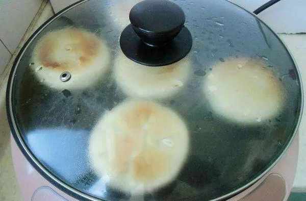 7、把電餅鐺刷一層植物油,電餅鐺通電按下餡餅功能鍵預熱,加餡餅坯