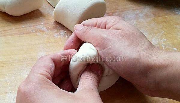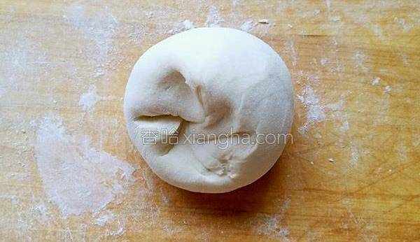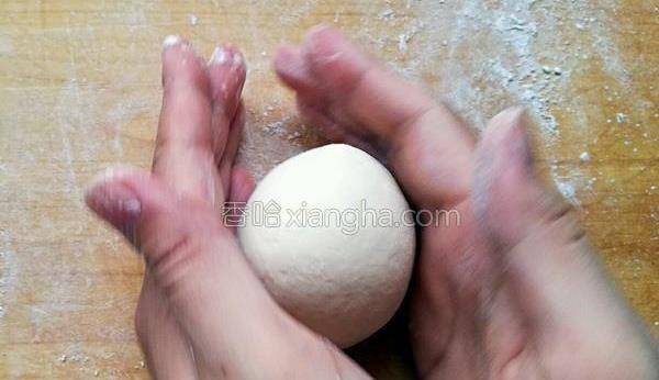 7.右手手掌揉面團,左手大拇指往中間團面團,其他四指輕輕扶著面團即可