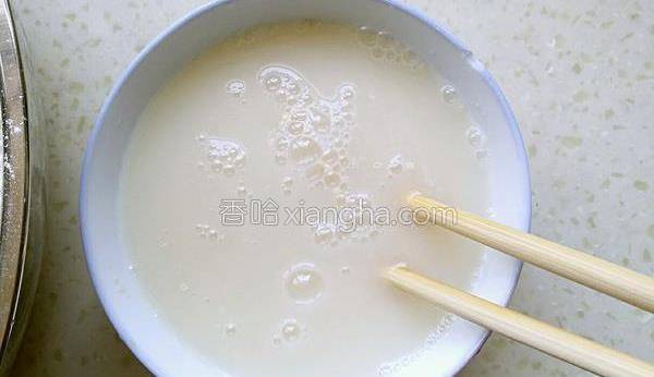 1.酵母粉放入水中,攪拌至融化。靜置5分鐘