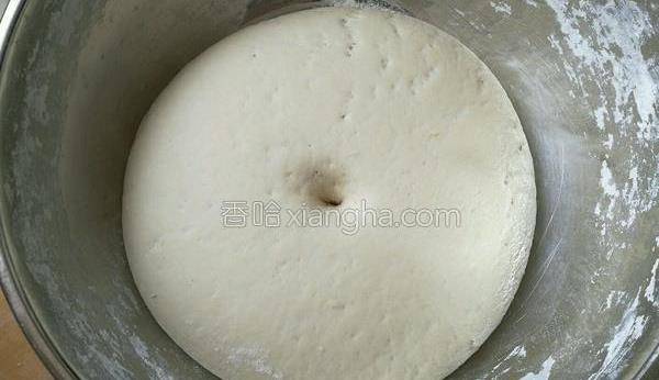 4.蓋蓋簾放溫暖處醒發,根據溫度不同,醒發時間也不同,發酵至兩倍到2.5倍大,用手指粘幹面粉戳洞,不回縮,不塌陷即可