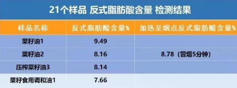 在2018年,深圳市食品藥品安全志願服務總隊就對市場上的一些菜籽油作出過研究,最終發現,竟然100g的菜籽油中含有9.49g的反式脂肪酸,是人造忌廉中含有的反式脂肪酸(1.7g/100g)的13.5倍。< /p>