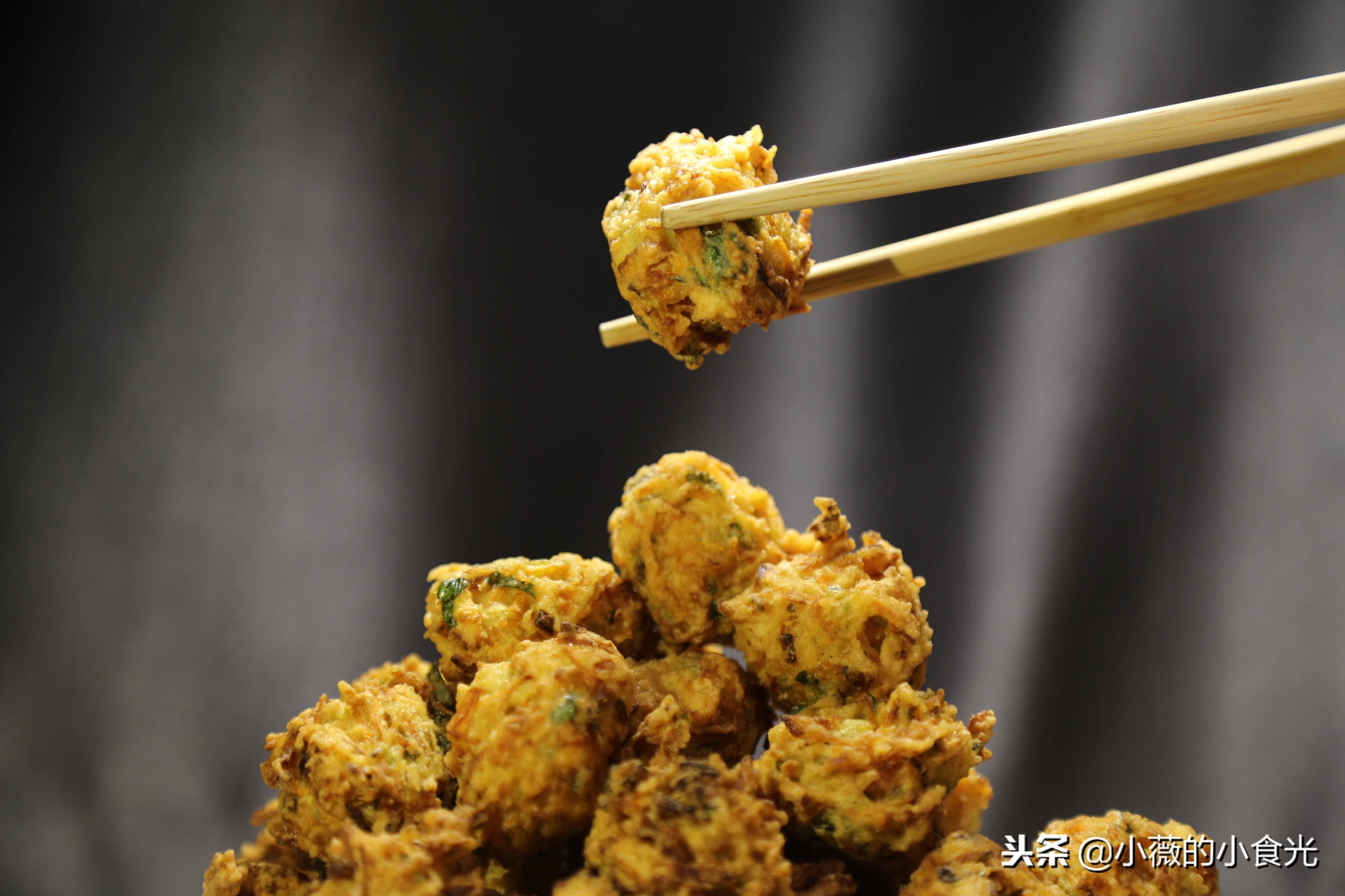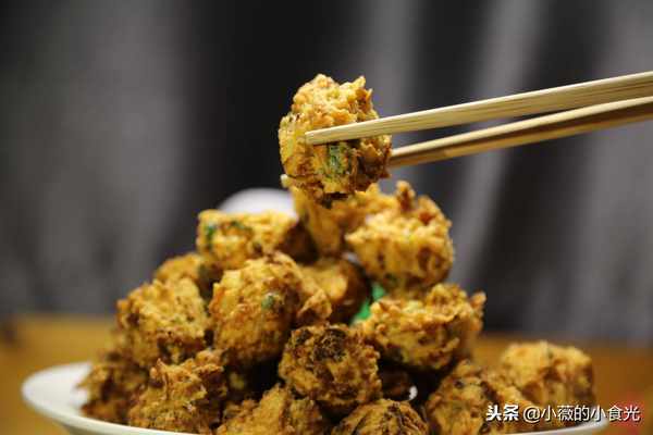 炸素丸子我喜歡用胡蘿卜配上香菜、雞蛋、少許面粉和一些調料,在手裡一握一擠放入滾滾的油鍋,看著一個一個圓圓的小丸子在油中跳躍,片刻之間那清香味兒便惹得人垂涎欲滴。成熟後的小丸子微黃焦脆,入口外酥裡嫩,因為有瞭胡蘿卜的加入,咬開後還有淡淡的微甜,菜的清香加上炸貨特有的酥香,喜歡這一口兒的最願意趁著剛出鍋的熱乎勁兒,迫不及待捏一個塞進嘴裡盡情享受它的焦香酥脆。