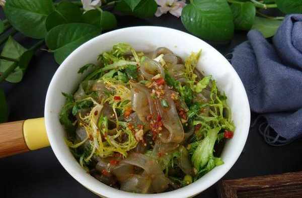 做法:苦菊洗幹凈。紅薯粉用冷水浸泡1小時以上。我用的是寬的紅薯粉,多泡一會兒比較好煮。把粉條泡軟。冷水下入泡好的粉條,加熱後煮7分鐘左右就可以斷火。大蒜切末,香蔥切碎放入大碗,再放入幹辣椒粉。把油燒到冒煙狀態澆入碗中,淋在這幾樣食材上。放入糖醋攪拌勻後,再放入芥末籽醬,把煮好的紅薯粉撈出放入大碗,再放入苦菊,苦菊直接用手掰斷成小一點的段就可以,拌勻,靜置幾分鐘,再翻拌一下就可以吃嘍。