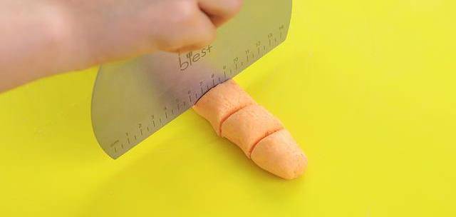 9、把面團搓成長條形,用切面刀切成大約10克大小的劑子。