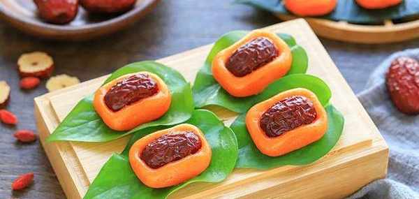 胡蘿卜最大的特點就是含有豐富的維生素A,對寶寶的眼睛特別有好處。做成這樣的小糕點,讓寶寶一手抓著自己吃,更能引起他的興趣。面粉加糯米的組合做出來口感有點像麻薯,越嚼越有味,紅棗的香味填滿整個口腔,一個接一個忍不住為它豎起大拇指。