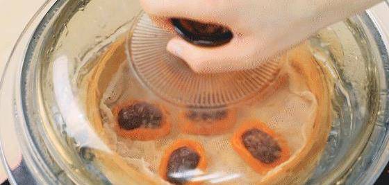 11、做好的胡蘿卜棗糕放入墊有濕紗佈的蒸屜裡,冷水上蒸鍋。