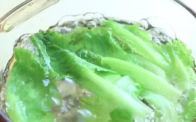 第五步:把生菜洗幹凈之後,放在250ml的沸水鍋中焯水一分鐘,然後取出切成細碎備用。