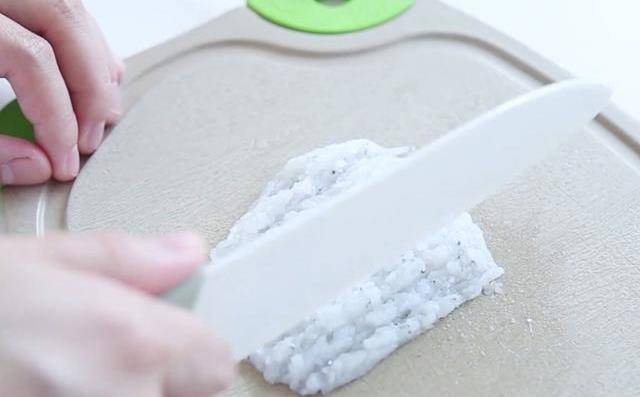 第四步:把處理好的銀魚用刀剁成碎泥,或者也可以放在碎肉機中均勻打制。