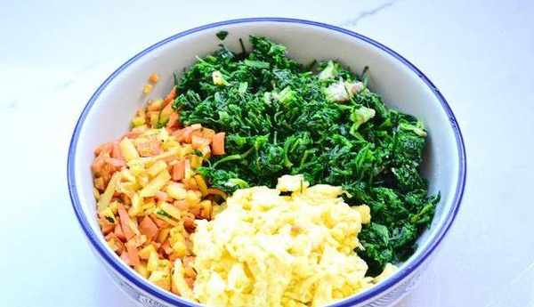 1、提前把雞蛋在容器中打散,在鍋中炒熟盛出,土豆、胡蘿卜分別去皮切條狀在鍋中炒熟。薺菜洗凈焯水撈出瀝幹水分備用。