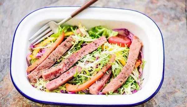 這道主食沙拉,看著它有些清淡實際上卻不寡淡。除瞭早餐食用外,平時吃或是減脂期吃也都是很不錯的選擇,因為牛肉本身脂肪含量低,它可以提供有效的能量又不會給你帶來過多的熱卡,隻要將份量控制得當,就是各種減肥青睞的對象瞭。另外常食用牛排好處多多,它含有人體所需的多種元素,例如蛋白質、維生素、等多種氨基酸。像是豐富的蛋白質,它可以提高人機體的抗病能力,像是寒冷的冬季食用的話還可以暖胃,可謂是不錯的補益佳品瞭。再有就是這款沙拉,吃的美味又營養豐富,關鍵10分鐘就搞定瞭,不耽誤上班,快來和我一起學習如何做的吧!