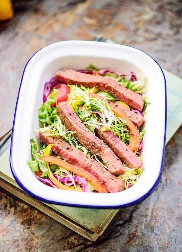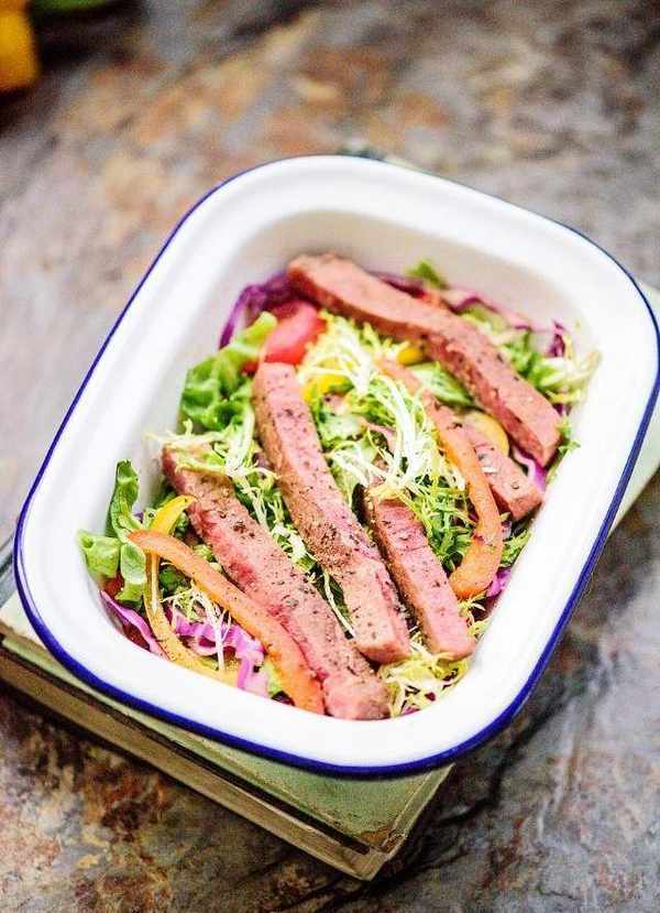 早餐,有時候為瞭多睡兒懶覺而不願起床,更別說吃一頓美味的早餐瞭。所以今天就為大傢介紹一款營養美味又做法十分簡單的一道主食沙拉,有葷有素,最為重要的是隻需10分鐘就可以搞定瞭。沙拉一般可能是午餐吃得多,像是現在天氣這麼冷,早上吃這個可能會感覺不暖和。實際上沙拉也是可以在冬季的早上食用的,可以選擇一些熱熱乎乎的沙拉食用的,今天這道主食沙拉就是一道烤牛排沙拉,把牛排加熱7分熟,彩椒也都烤熟,混合生菜一起食用,也是別有一番風味呀。冬日的早餐,這款高蛋白質,低脂肪的主食沙拉,拯救起床困難戶。
