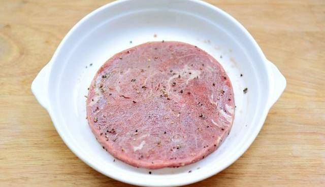 2、牛排用黑胡椒碎、鹽、少許的橄欖油,按摩2分鐘。