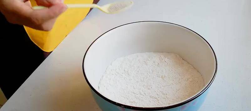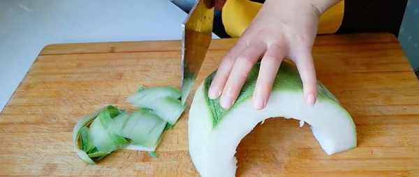 現在300克面粉中放入三克酵母,一勺糖促進面粉發酵,為瞭面粉化的快一些,用溫水和面,蓋上保鮮膜發至兩倍大,這是剛買來的一塊大冬瓜,現在把它從中間切開,太大瞭。切開之後把籽去掉,然後去皮。
