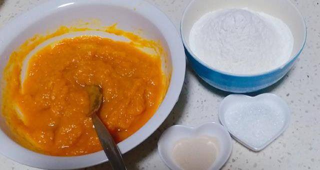 所需食材:去皮南瓜300克,面粉100克,糯米粉50克,淀粉兩勺,酵母2克,白糖30克。