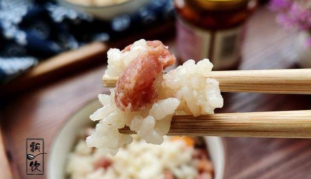 6、香腸鮮蔬燜飯盛入碗中,傢人每人吃上兩三碗,再配上一碗清湯,營養飽足。